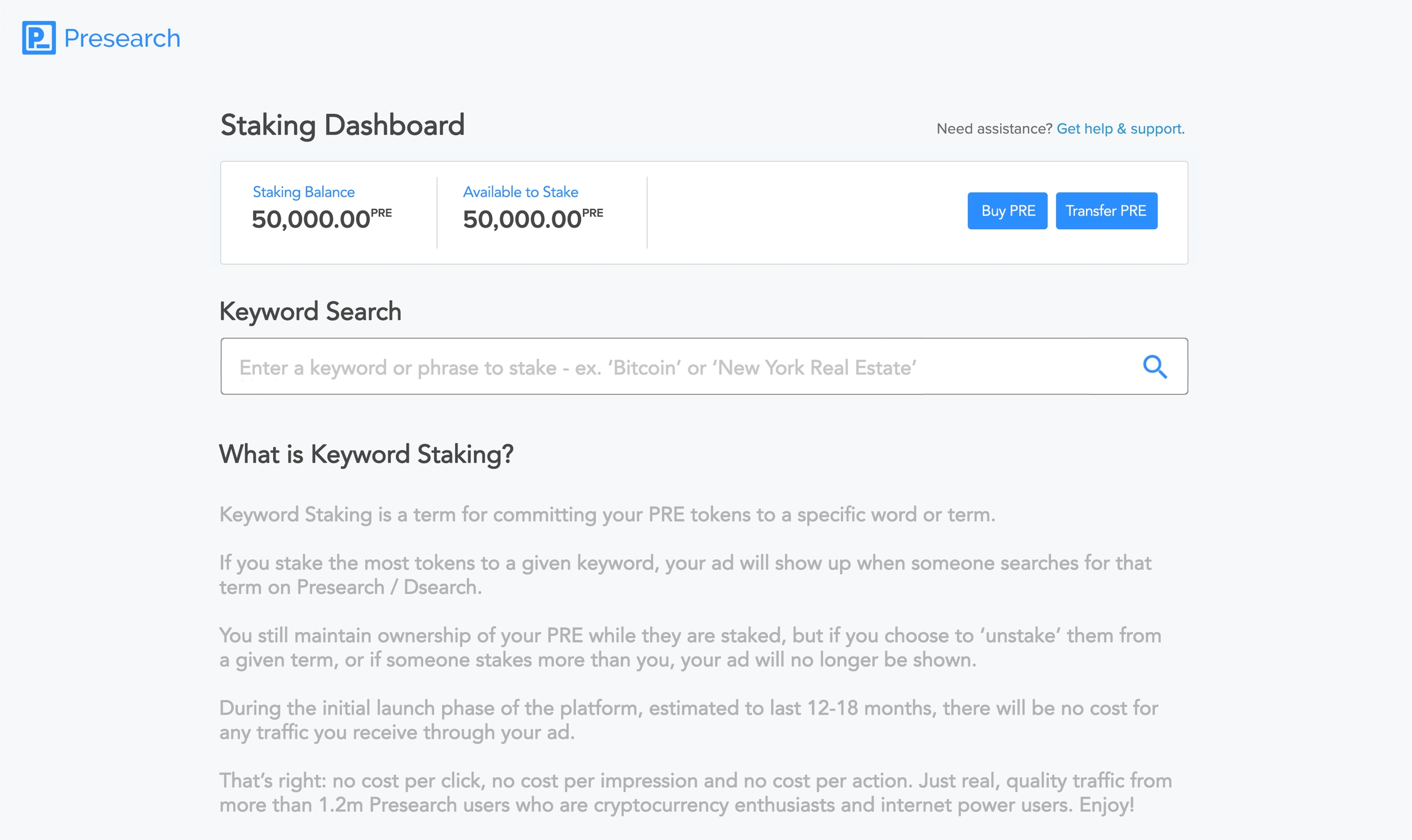 If the objective is to put your PRE tokens to work, staking them against various keywords is a smart strategy.