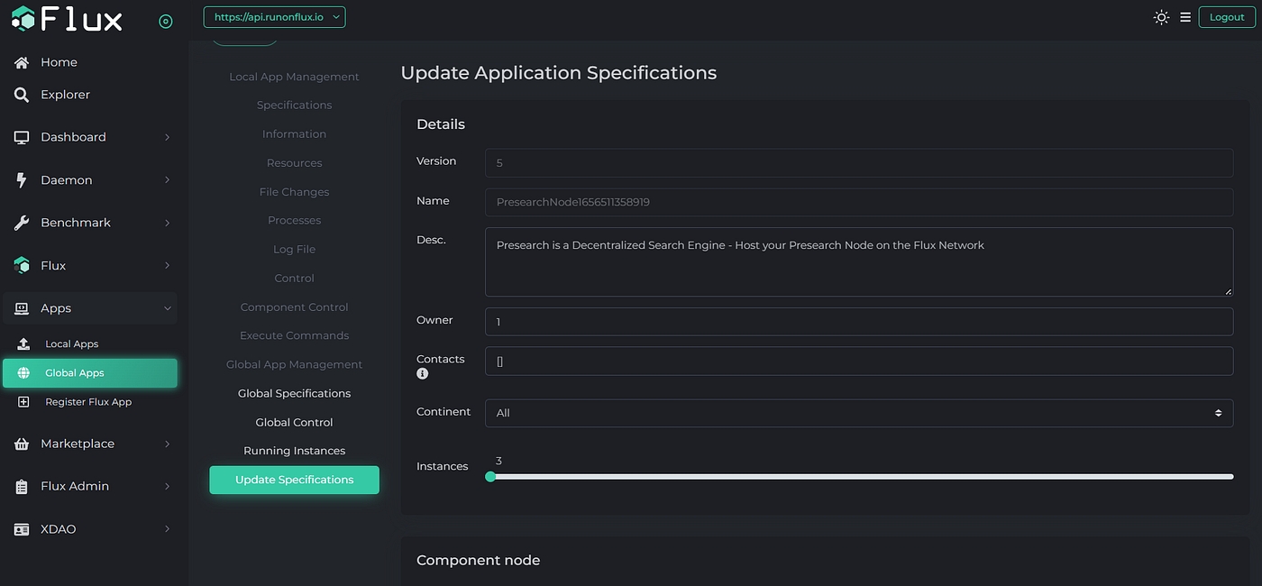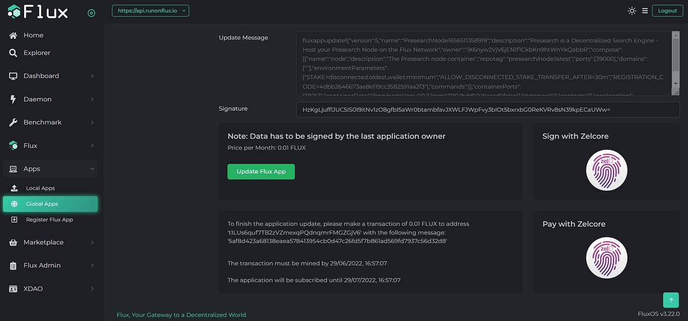 How to update a Presearch node on Flux: