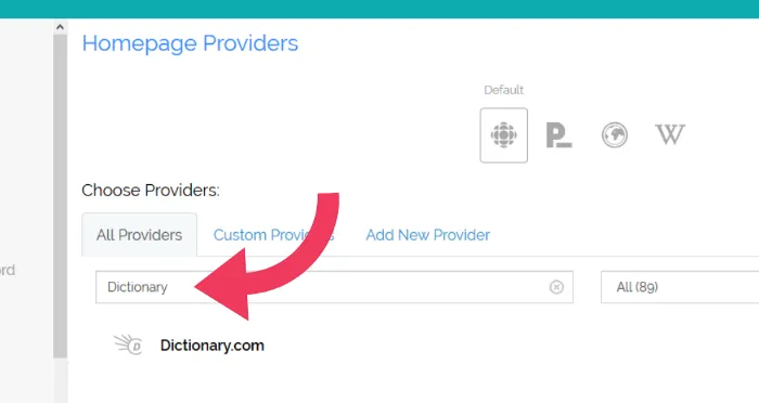 For this tutorial, we are searching for ‘Dictionary’. Use this field to search for many other search providers.