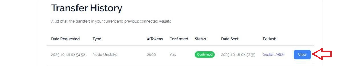 7. You will now be able to see the PRE stake on your **Node Dashboard** and you will also be able to see it in **Transfer History.**