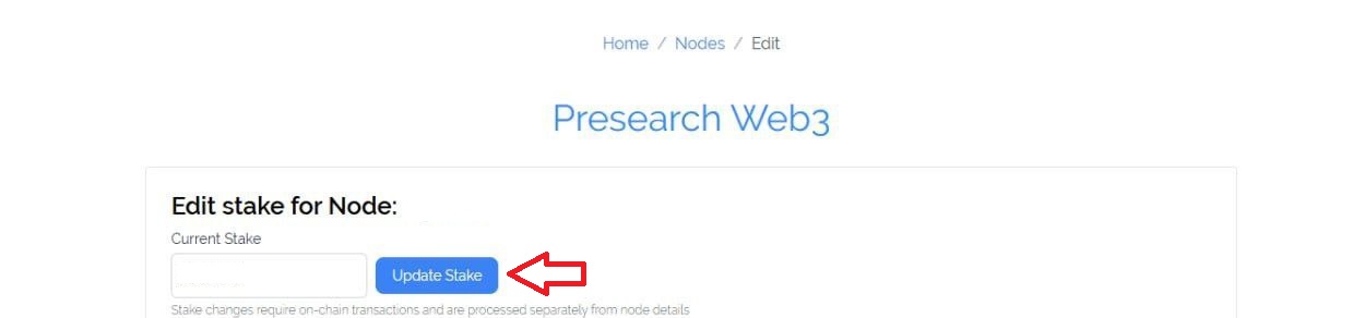 3. Enter the Stake amount manually or set it to 0 if you want to withdraw all the Pre from the node and click Update Stake.